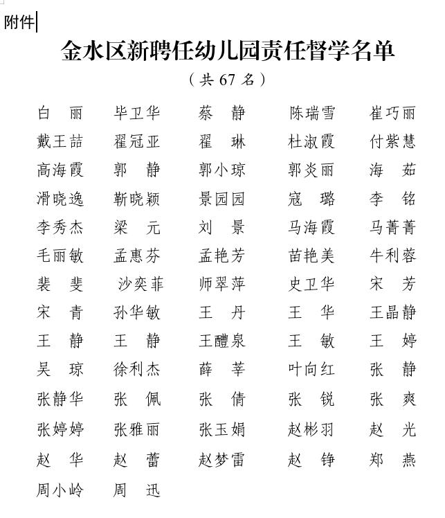 附件:金水区新聘任幼儿园责任督学名单