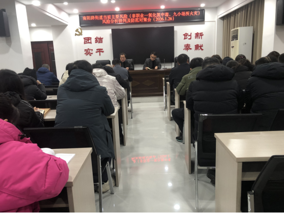 1月26日,南阳路街道办事处在六楼会议室召开当前主要风险(非职业一氧化氮中毒、九小场所火灾)风险分析研判及防范对策会,街道党工委书记、办事处主任主持会议,街道全体人员参会。
